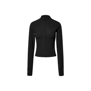 It fits into the quieter parts of the day, when layering needs to feel natural. The cropped length sits just below the waistband, keeping the silhouette clean without feeling shortened. The fabric rests close to the body with an easy stretch, allowing movement without changing its line. It’s worn when you want light coverage that feels considered, and kept on as the day settles.