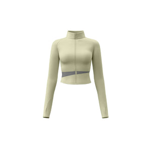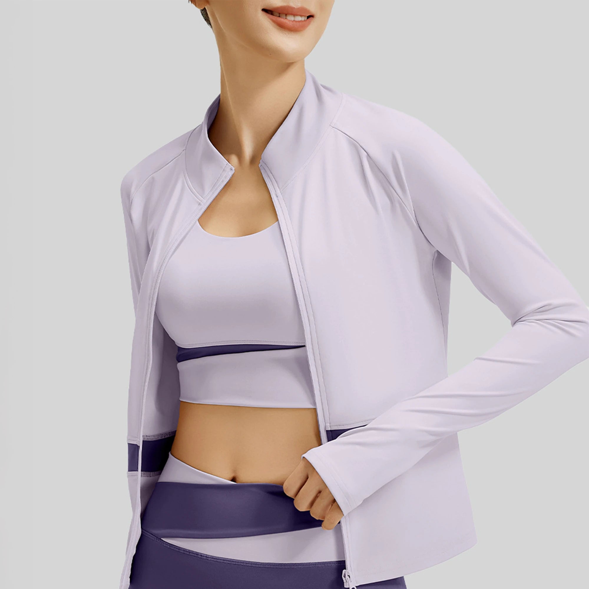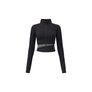 It comes into play during the long middle of the day, when layers need to feel intentional without effort. The cropped cut and fitted shape keep the silhouette clear, holding its line as plans overlap and shift. The fabric feels smooth and flexible on the body, allowing movement while staying composed. It’s worn when the look needs structure without weight, and kept on as the day continues.