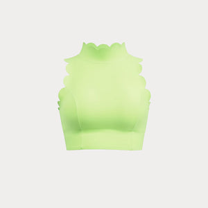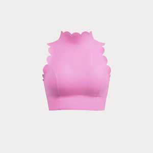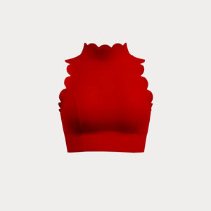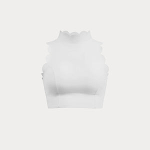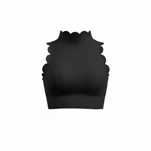 From late morning plans into an unplanned afternoon without a second look in the mirror. It sits close with clean lines, holding its shape as you move through the day and stay in motion. The high neckline feels steady and secure, while the scalloped open back adds softness without asking for adjustment. It’s the kind of piece you put on knowing the outfit is already done, and wear straight through whatever comes next in your day.