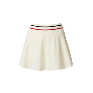 It fits easily into the calmer parts of the day, when getting dressed feels uncomplicated. The high-rise waist sits clean and steady, while the pleated shape keeps the silhouette light and composed as you move between moments. The fabric holds its structure without feeling stiff, letting the skirt maintain its line through wear. It’s worn because it feels balanced and familiar, and kept on as the day carries on at its own pace.