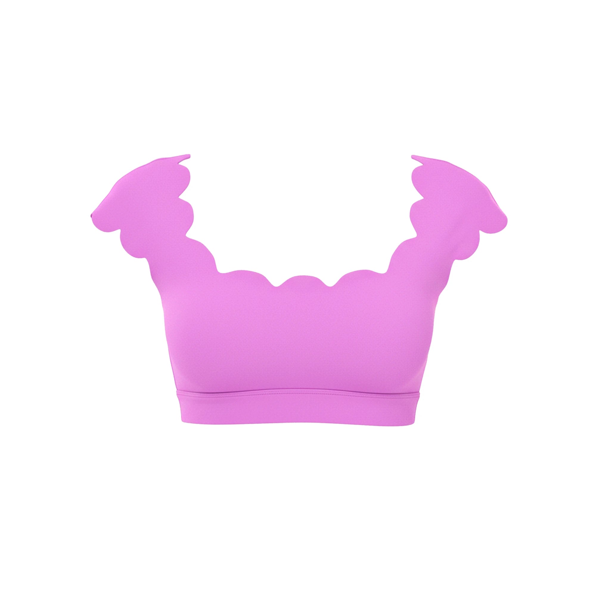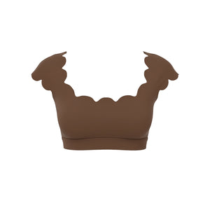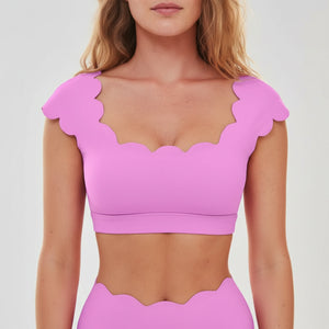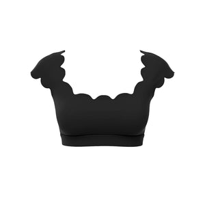 From midday plans into an evening that comes together without planning. The scoop neckline sits softly at the front, while the low back feels open but controlled, keeping the line clean as the day moves on. The fabric is smooth with a gentle stretch, and the scalloped sleeves hold their shape without curling or shifting. It’s an easy choice when you want the outfit to feel complete, and something you leave on as the hours pass.
